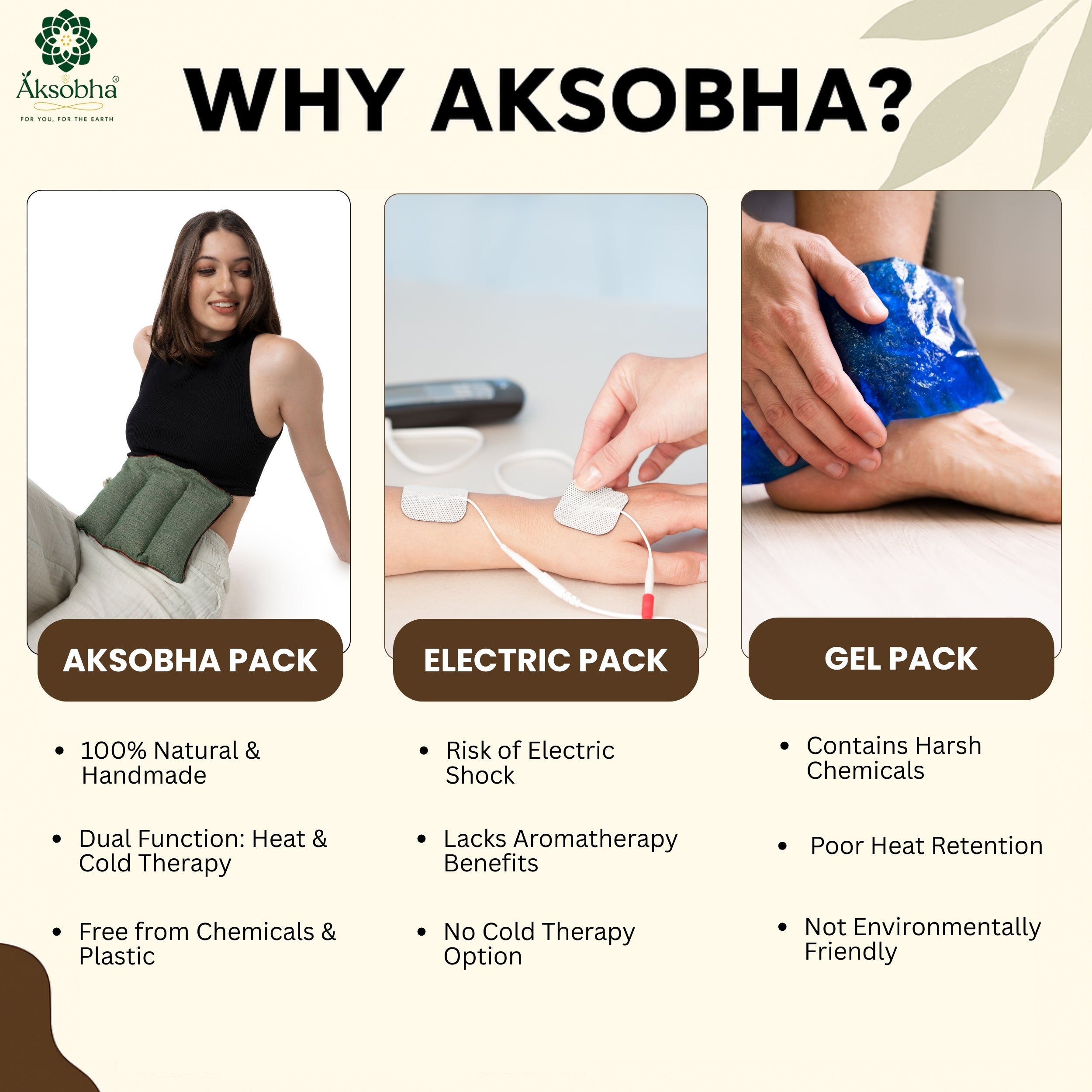 Experience the soothing benefits of Aksobhaās Basic Pack ā a versatile Herbal Hot & Cold Therapy Pack designed for multipurpose pain relief. Its simple, ergonomic design easily adapts to any body part, making it an effective solution for joint pain, muscle aches, menstrual cramps, swelling, and sunburns. Ideal for use as a microwavable heating pad or a cold aromatherapy pack, this reusable product offers quick and targeted relief.